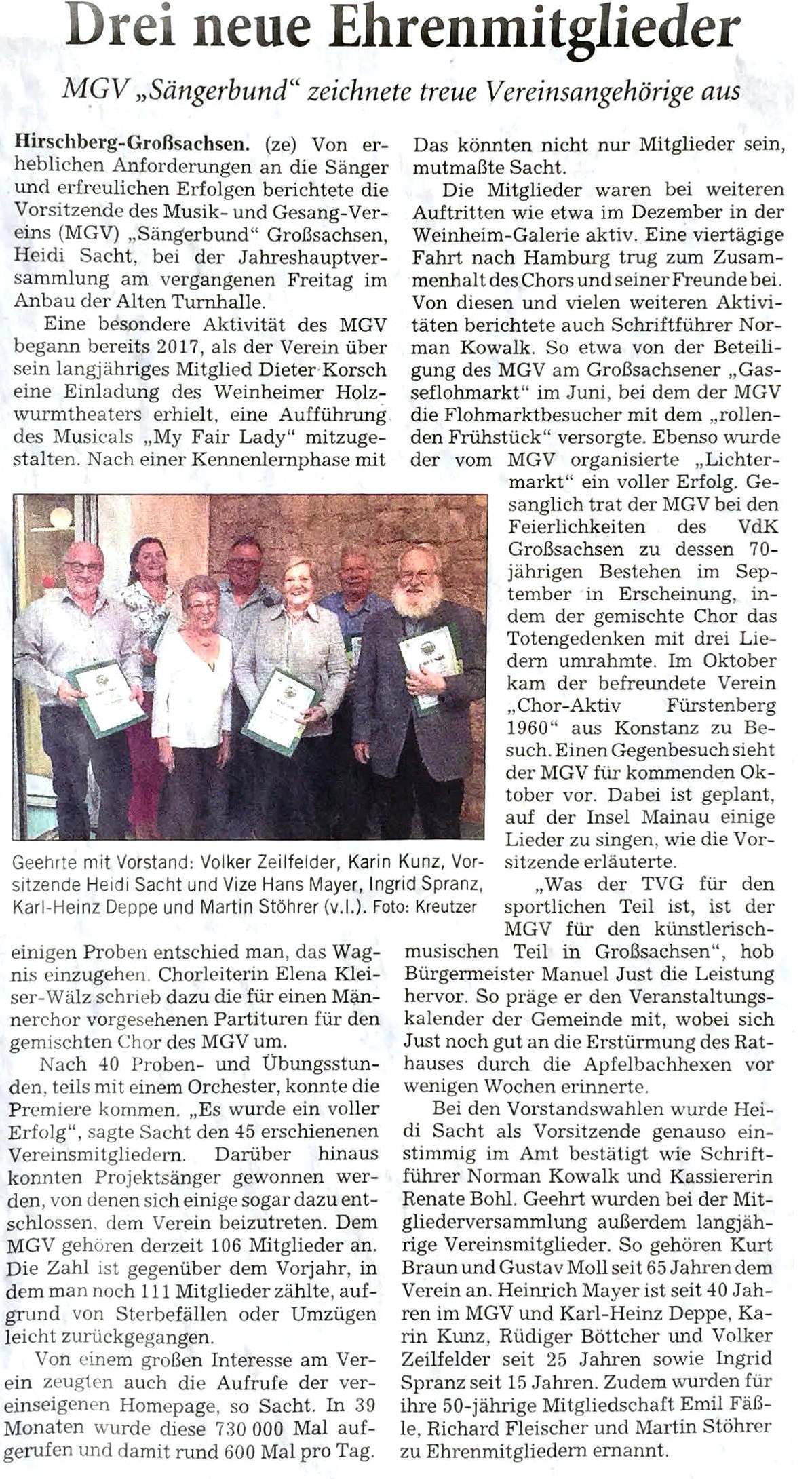 Die Jahres-Mitglieder-Versammlung unseres Vereins fand am 15.März 2019 statt. Die RNZ berichtete hierüber: