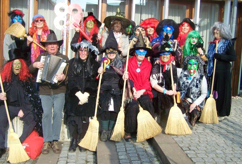 Die Apfelbachhexen in Aktion vor dem Rathaus im Februar 2018: